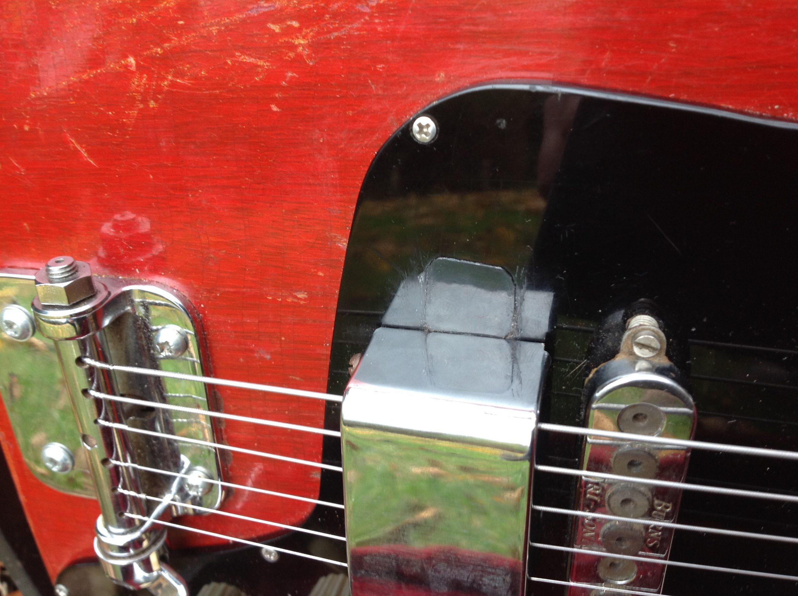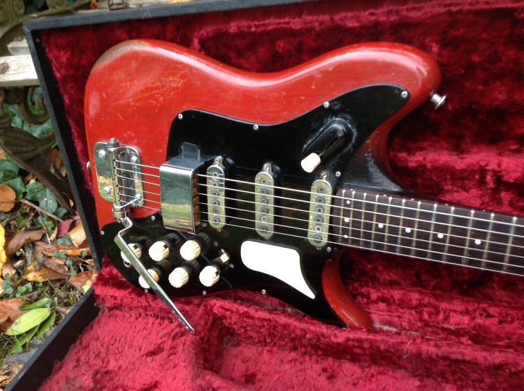 Cool Burns Libra Artist complete with case. Its had other tuners on it at some point but we have put some replica Van Ghent replacements on. A few filled screw holes on the reverse side of the headstock but the post holes remain original. It may have had another bridge on it at some point as i can see a section of pick guard pieced in under the bridge. Hard to spot and affects nothing. Early guitar has a mixture of stamped “tri sonic” and smooth cover pickups. Its had a recent fret job and plays well. One knob looks to be a later replacement. All electronics work seamlessly.
