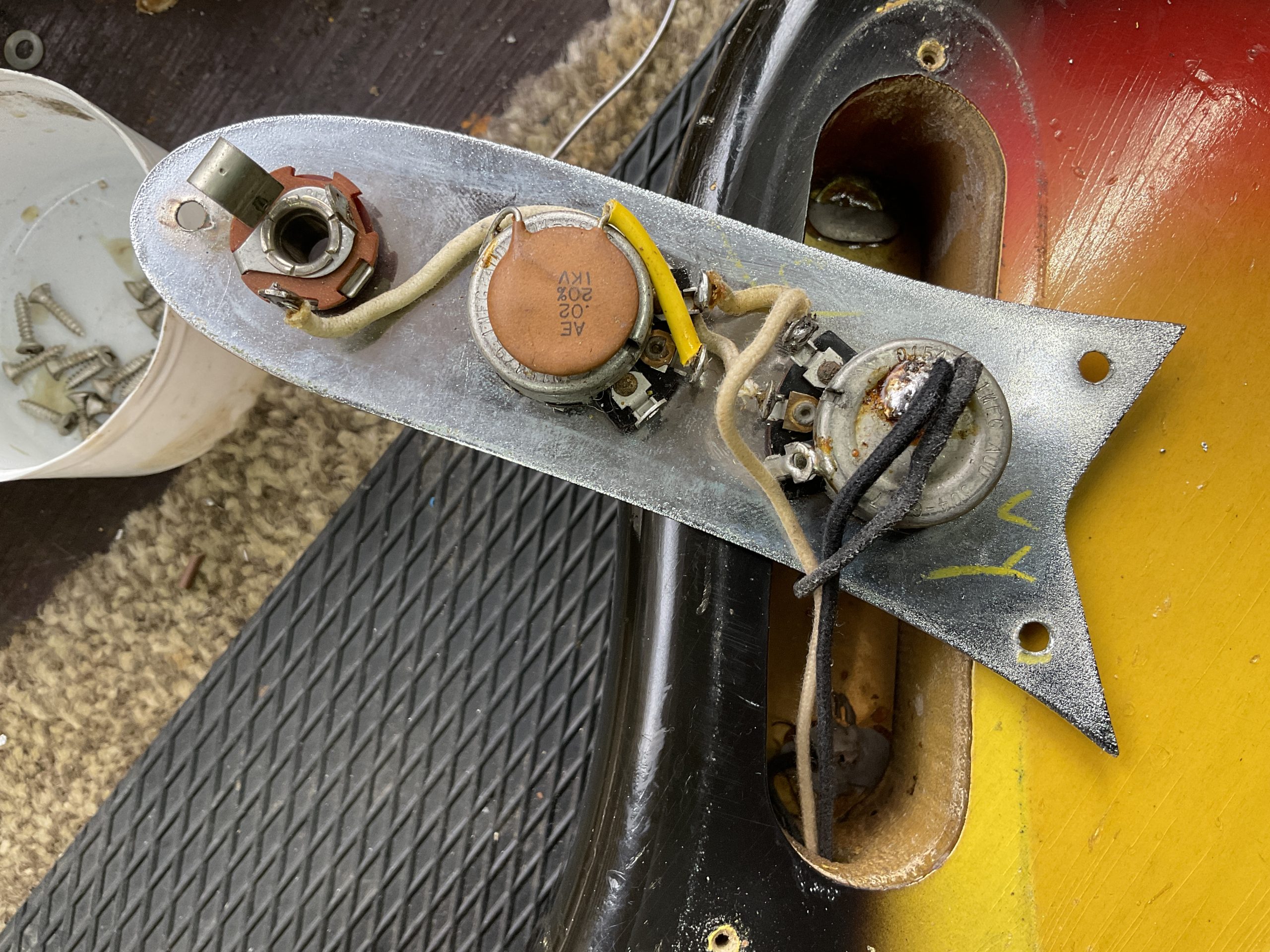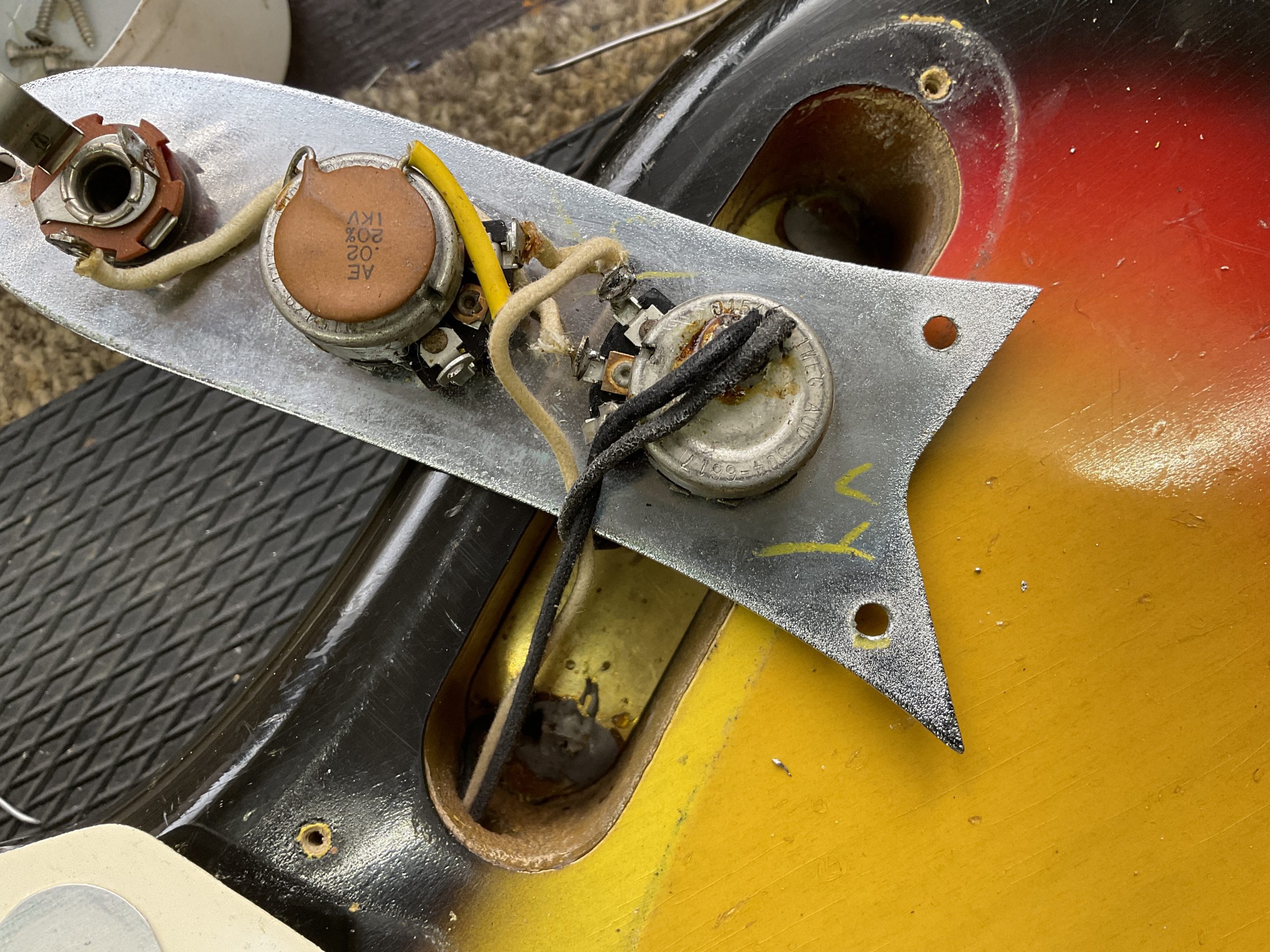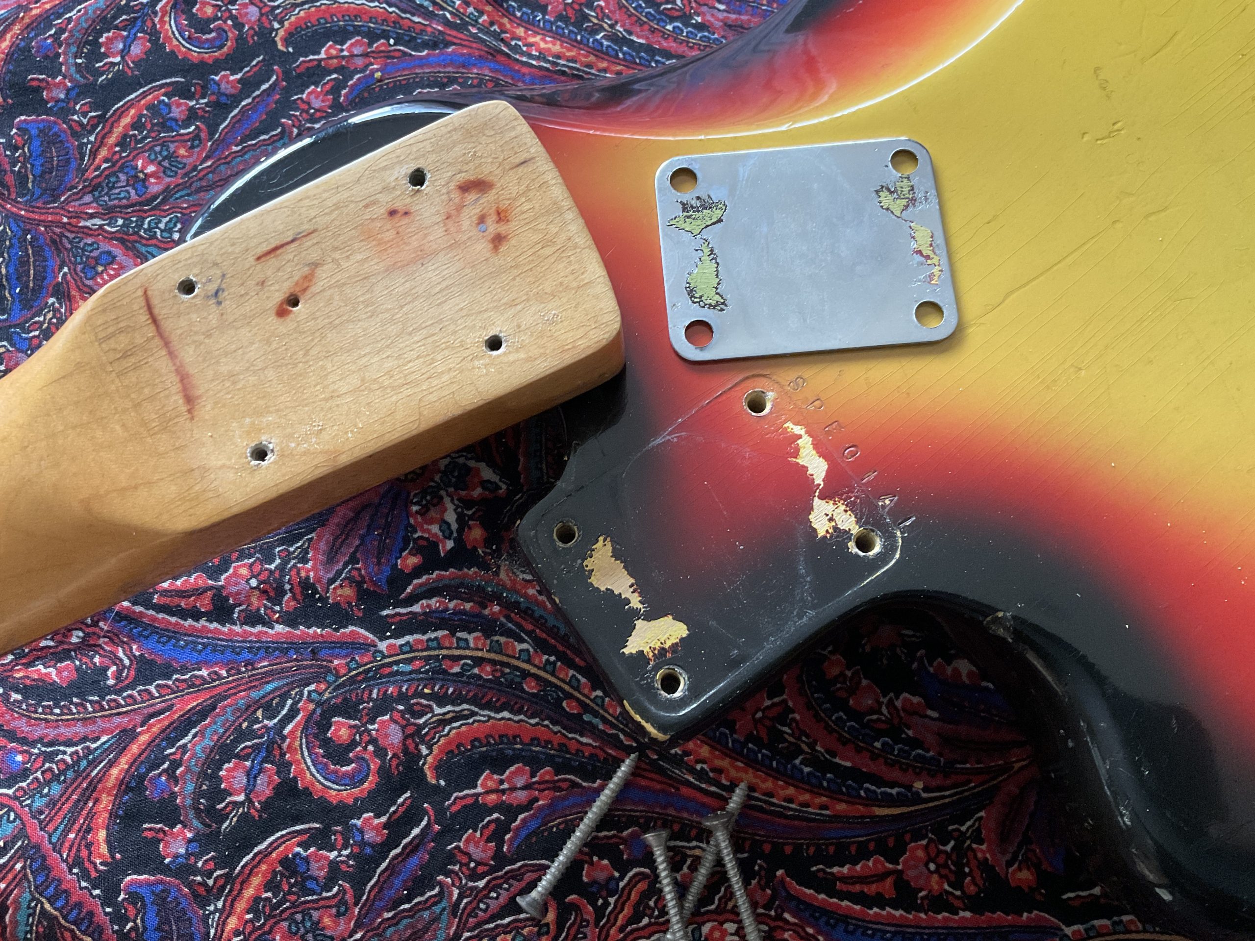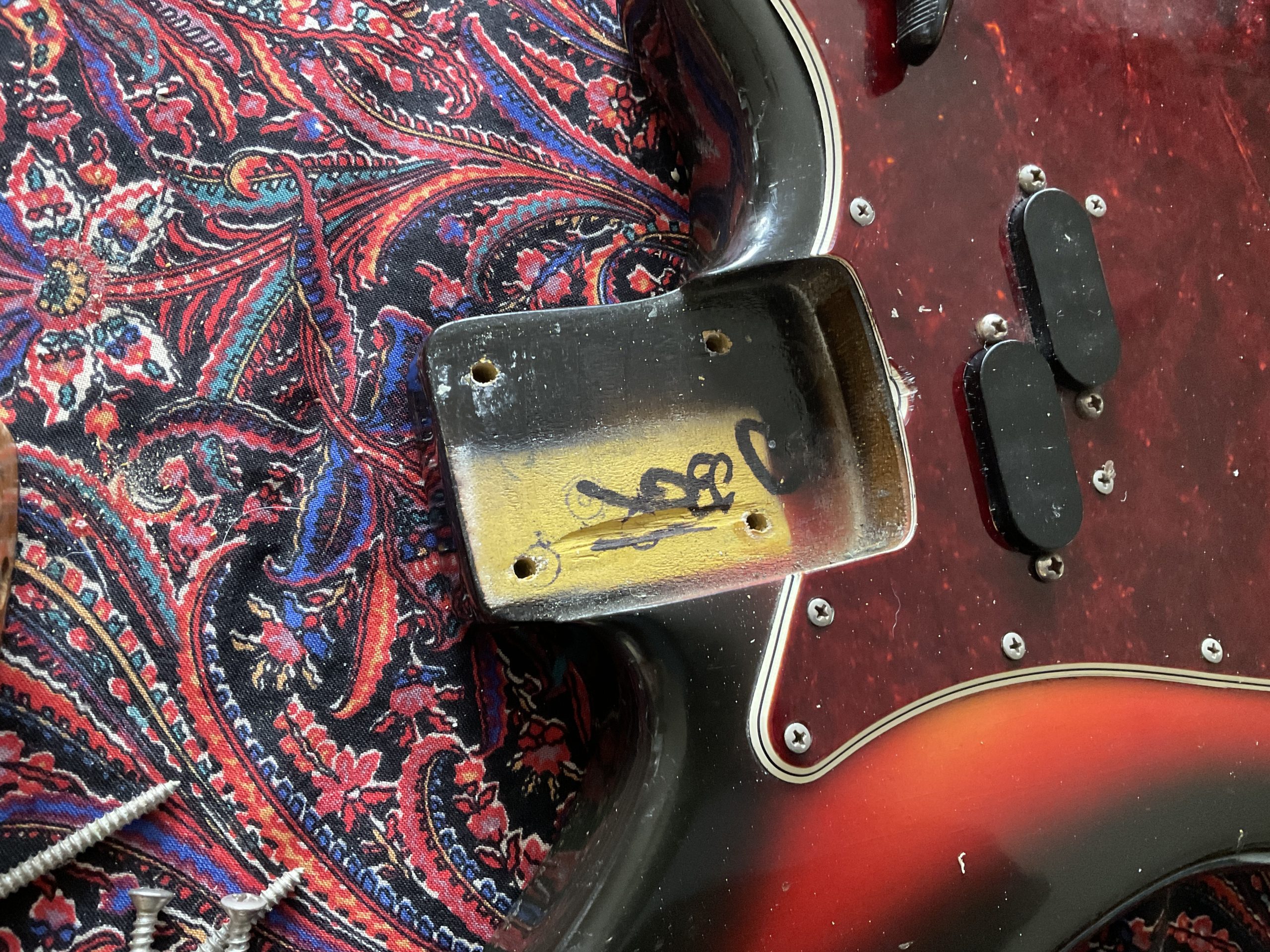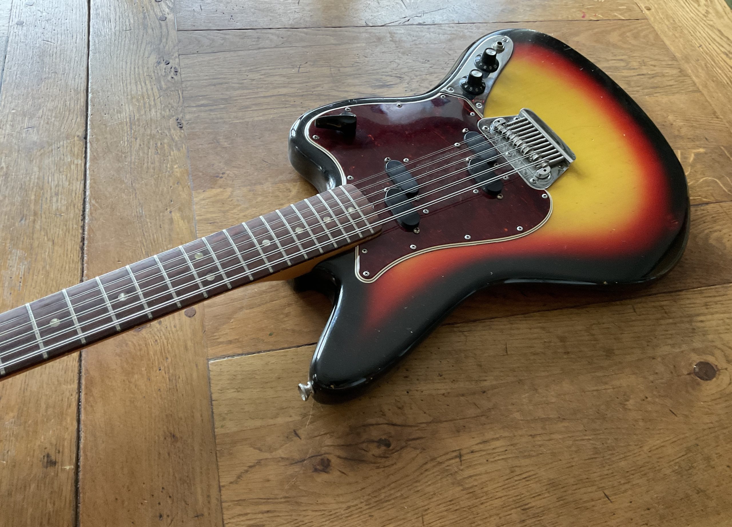 Here we have a fine example of Fender’s legendary electric 12 string, its neck is dated February 66 and its potentiometers 17th week of 1966. Its a dot neck guitar with an unbound fingerboard. It weighs 8 lbs 5 oz and its neck pickup reads 9.5 k ohms and the bridge 9.2 k ohms. It’s also stamped “special” under the neck plate like many from this era seem to be as the model is fairly new to the Fender line up being introduced in mid 1965 and many early guitar’s featured at trade shows to promote the new instrument. The guitar plays perfectly with a nice low action easily explaining why these 12’s were a firm studio favourite. It also comes with its original handbook with matching serial number which is not often seen. The case is a Fender pre CBS brown tolex case and whilst not being in the best condition with some repairs and a missing latch, holds the guitar comfortably and does the job.